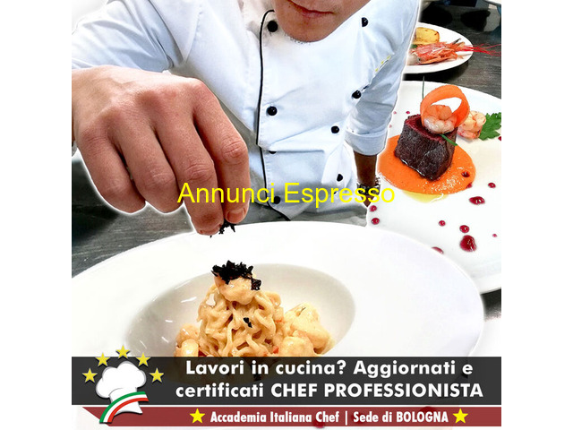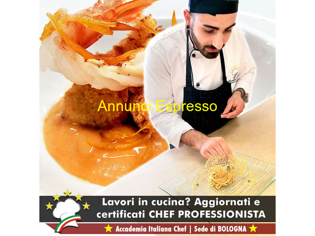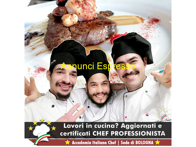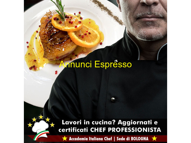 corso Chef Bologna Corso di Chef a Bologna formazione professionale Lavori in Cucina? Aggiornati e certificati come Chef Professionista È il momento di potenziare le tue capacità e fare un salto di qualità nella tua carriera. Con lo speciale percorso a Norma Europea ISO 21001 e Certificato dall?Università IUL puoi migliorare le tue abilità e certificarti come Chef Professionista. Bologna (BO)