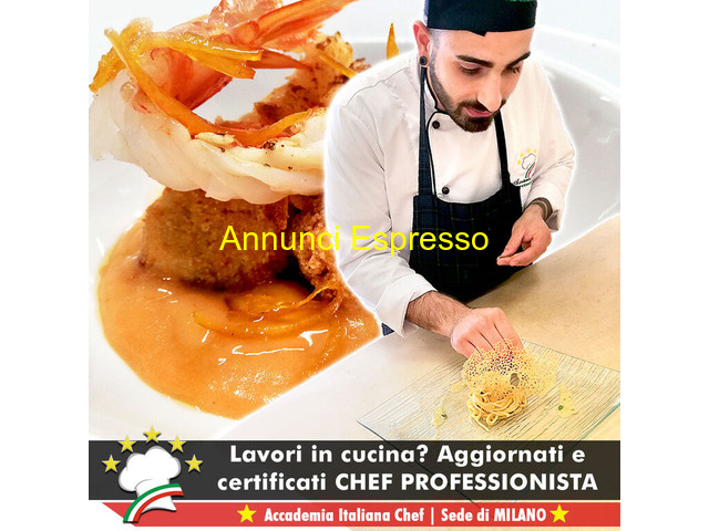 Corso Cuoco a MilanoAltri Corsi - Milano (Milano) - 27/11/2025 Liberocorso Cuoco a Milano CERTIFICAZIONI PROFESSIONALI DEL CORSO L'Accademia è un Polo Tecnologico Universitario IUL Questo corso è riconosciuto dall'Università Telematica degli Studi IUL, ed ha ricevuto il Patrocinio Scientifico. Il completamen...