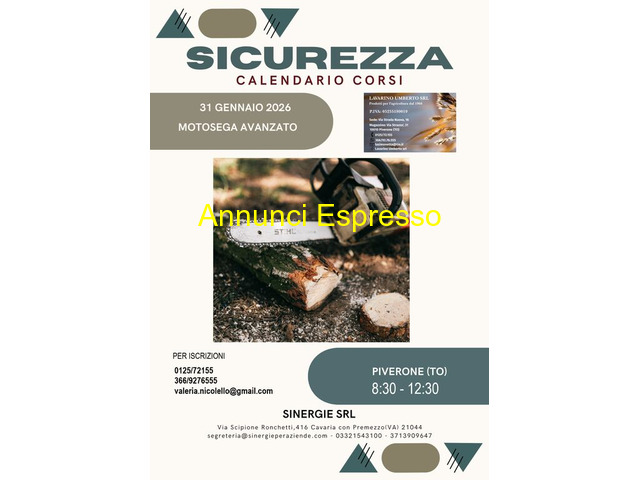 corso Corso per l'uso in sicurezza della motosega Organizziamo un corso pratico e teorico per l?utilizzo in sicurezza della motosega, rivolto a privati, hobbisti e operatori del verde. Durante il corso verranno affrontati i principali aspetti tecnici, le norme di sicurezza e le corrette tecniche di taglio. Al termine verrà rilasciato un attestato di partecipazione valido come formazione per l?uso in sicurezza dell?attrezzatura. Sede: Piverone (TO) Periodo: 31 gennaio 2026 ? Per informazioni e iscrizioni: [NUM] / WhatsApp [NUM] Piverone (TO)