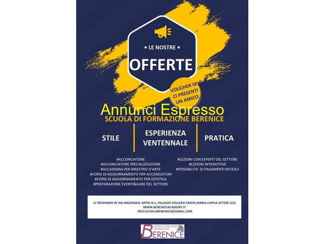 CorsoCORSO TEORICO ACCONCIATORE 350 OREAltri Corsi - Santa Maria Capua Vetere (Caserta) - 08/10/2025 Libero