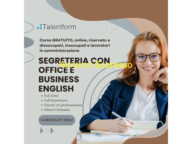 Libero CorsoSegreteria con Office e Business English (corso GRATUITO online, full time) Roma