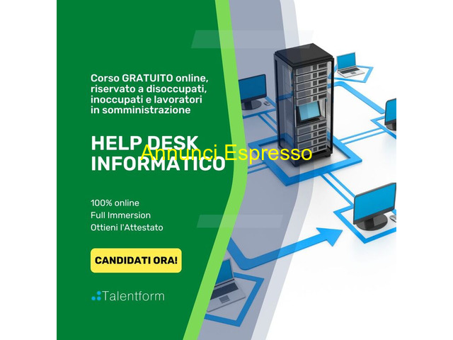 Libero CorsoHelp Desk Informatico (corso GRATUITO online, full time), edizione del 10 novembre 2025 Roma