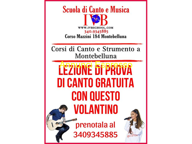 corso CORSI DI CANTO E STRUMENTO Lezione di prova gratuita con questo volantino. Offriamo Corsi di canto e musica per tutte le et? a Montebelluna. Lezione di prova gratuita con volantino. Prenota la tua lezione inviando questo volantino al Montebelluna (TV)