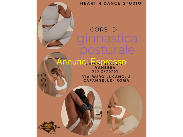 corso Corso di Ginnastica Posturale ?? Corso di Ginnastica Posturale Prenditi cura del tuo corpo? ogni giorno! Un percorso dedicato a chi desidera migliorare la postura, alleviare dolori muscolari e articolari e ritrovare benessere e leggerezza nei movimenti. Attraverso esercizi mirati e guidati da insegnanti qualificati, imparerai a conoscere e rinforzare il tuo corpo in modo dolce ma profondo, migliorando equilibrio, respirazione e mobilità. Ideale per tutte le età e livelli di allenamento. Allenati con consapevolezza, migliora la tua qualità di vita! Heart4Dance Studio ? Via Muro Lucano, 2 (Capannelle ? Roma) Chiama o scrivi a Vanessa [NUM] per prenotare la tua lezione di prova gratuita Roma (RM)