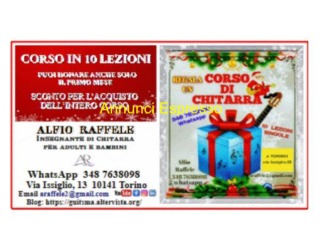 corso Dona un corso di chitarra Hai regalato una chitarra. Puoi donare anche un corso, od una parte dello stesso, per imparare nel modo migliore. Corso in 10 lezioni singole di un'ora. Sconto del 10% per l'intero corso. Torino (TO)