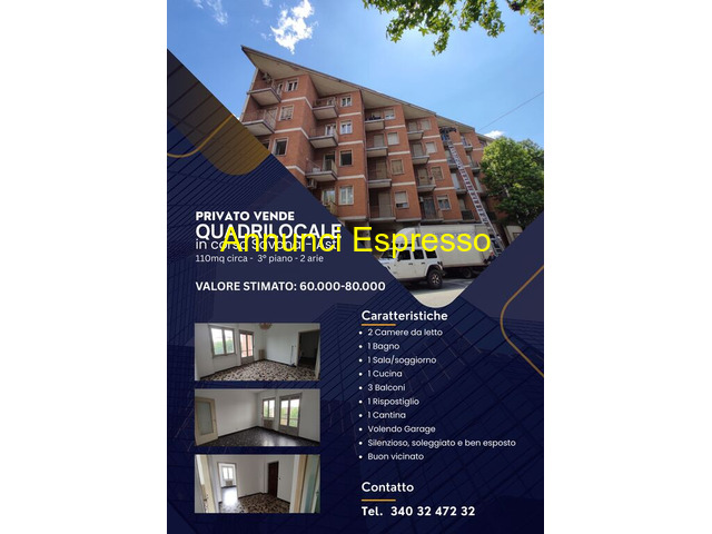 appartamento 110mq Discreto terzo piano numero locali quattro numero bagni uno Privato prezzo EUR.59.000,00 anno 1968 Classe energetica E IPE NA Asti, zona stazione Privato vende quadrilocale di 110mq. ad Asti, zona c. so Savona, verso stazione. Cucina, 2 camere da letto, sala, ampio ingresso, bagno. 3 balconi. Cantina. 3° piano. Silenzioso. Buon vicinato. Soddisfacente amministrazione condominiale. 59. 000 Euro. Volendo box auto. Asti (AT) Asti (AT)