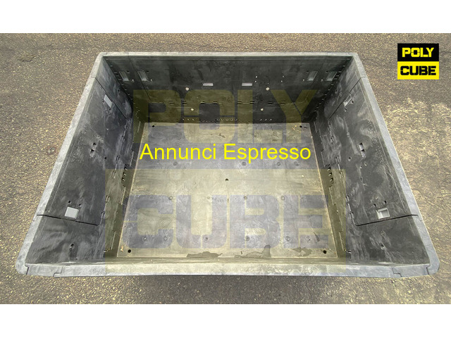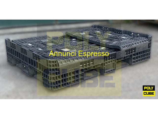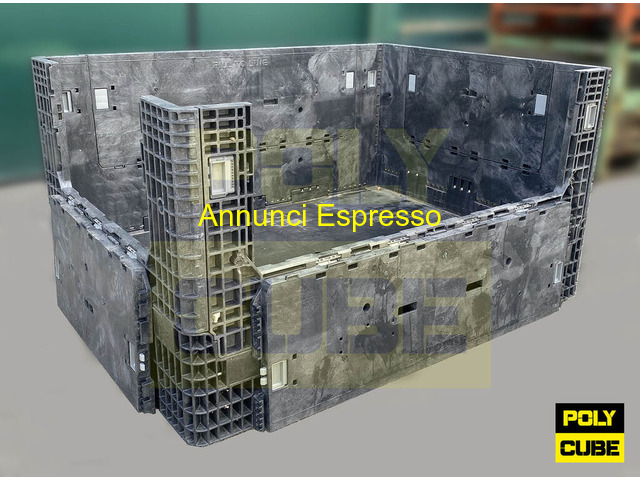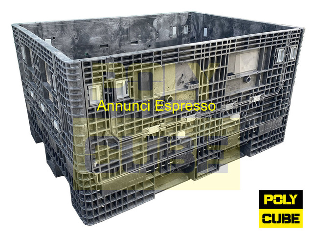 CASSONI IN PLASTICA USATI CASSE PALLET prezzo EUR.10.101,00 Contenitori industriali in plastica usati marca ORBIS versione Big. Sono abbattibili o richiudibili per abbattere i costi di trasporto nella logistica di ritorno, sono impilabili ad incastro sia da aperti che da chiusi, la base ? costituita da una robusta struttura a bancale con 6 piedi di appoggio e slitte, sia centrali che laterali. Hanno 2 sportellini intercambiabili per il prelievo del materiale anche quando sono accatastati. Lotto di BUONA QUALITA?: limitate rotture dovute alla presa con carrello elevatore. Misure esterne cm 163 x 122 h88 - Misure interne cm 156 x 115 h68 - Disponibili anche con misure cm120x100h76 e cm 200x120h87 e cm 81x77 h64. Proposta da Polycube srl, salvo il venduto, possibilit? di spedizione anche per piccoli quantitativi. Prezzi su richiesta con sconto su quantitativi. Contenitore in plastica rigida Polycube, struttura aperta, ideale per trasporto e stoccaggio merci, dimensioni robuste e resistenti. Utilizzato per uso industriale. Poppi (AR)