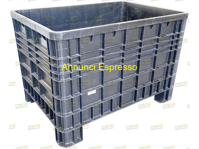Cassoni o bins in plastica chiusi usati prezzo EUR.1.111,00 Cassoni in plastica (HDPE riciclato) con 4 piedi, accatastabili o sovrapponibili ad incastro. Hanno il fondo e le pareti lisce, sono facilmente lavabili ed hanno una struttura esterna nervata che ne aumenta la resistenza e la stabilit?. Movimentabili con carrello elevatore e transpallet. LOTTO DI BUONA QUALITA? come da documentazione fotografica. Misure esterne mm 1200 X 800 H800, Misure interne mm 1100 X 735 H650. Riferimento PC045-01, proposti da Polycube Srl, PREZZO SU RICHIESTA, possibilit? di spedizione anche piccoli quantitativi, disponibilit? immediata a magazzino SALVO IL VENDUTO. Contenitore in plastica rigida di colore nero, forma rettangolare, ideale per stoccaggio e trasporto. Adatto per uso industriale. Poppi (AR)