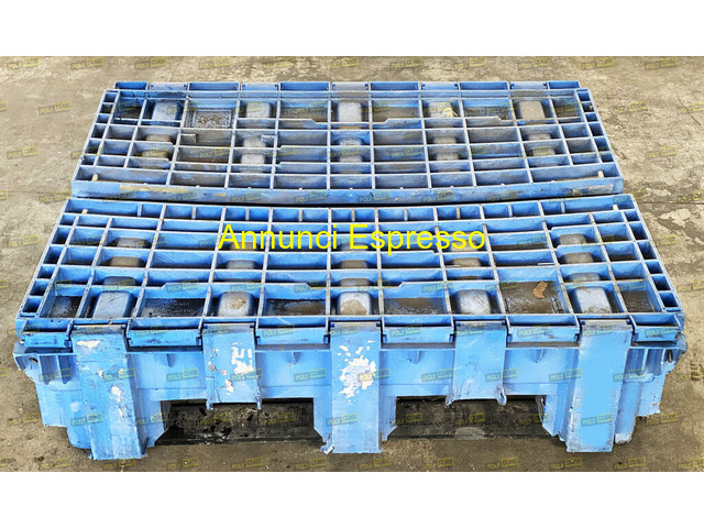 CONTENITORI CESTONI IN PLASTICA USATI prezzo EUR.1.111,00 CASSE PALLET IN PLASTICA USATE Contenitori o cassoni industriali in plastica richiudibili abbattibili marca JCOPLASTIC modello CTA 760-BOX usati. Sono impilabili o accatastabili ad incastro sia da aperti che da chiusi, hanno 6 piedi e due traverse. Misure mm 1200x1000 h760. Maggiori dettagli e richiesta prezzi solo dal nostro sito polycube(punto)it Contenitore industriale blu in plastica, dimensioni grandi, Ideale per stoccaggio e trasporto materiali. Utilizzabile in vari settori. Poppi (AR)