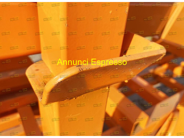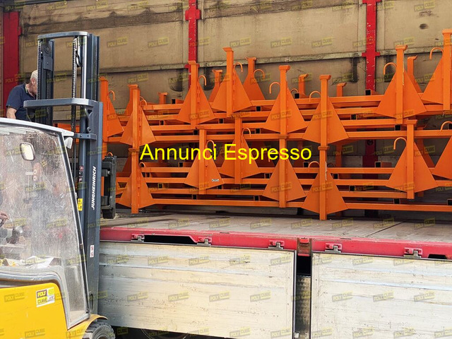 Porta Barre usati prezzo EUR.1.111,00 Contenitori rack o pedane porta barre in acciaio verniciato colore arancio serie pesante. Sono sovrapponibili ad incastro ed hanno i ganci per sollevamento, manovrabili con gru e carrello elevatore. Sono costruiti con tubolare d'acciaio sezione quadra mm60x60. Utilizzabili per lo stoccaggio ed il trasporto di barre rigide, tubi, profili, ecc. ecc. Misure esterne mm 4830 X 670 H 730, Misure interne mm 4830 X 550 H 440. Lotto di ottima qualit? pari al nuovo. Riferimento MP093-12, proposti da Polycube Srl. PREZZO SU RICHIESTA, possibilit? di spedizione anche piccoli quantitativi, disponibilit? SALVO IL VENDUTO. Ottima condizione, uso professionale. Poppi (AR)