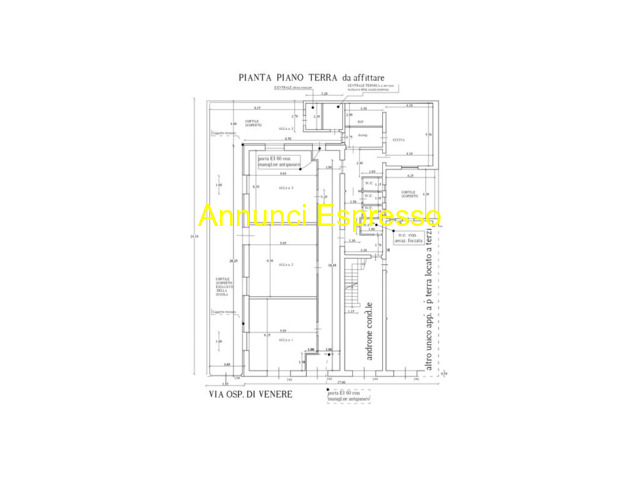 in affitto ufficio Vic. osped.Divenere 300mq affitto Euro 1000 per mese Privato IPE 110 Classe energetica B Imm. le multiuso mq 267 ex scuola idoneo anche a B & B su via ospedale Divenere solo a persone certamente referenziate ex scuola pubblica IN BARI-CARBONARA , idoneo anche a B & B , ludoteca , asilo nido, ufficio, laboratorio analisi, ristorazione ecc. ecc. vic. Osp. Divenere, vicinissimo Osp. DiVenere, libero per scuola di ogni tipo ( materna, asilo nido , scuola guida , centro istruzione varia, danza, ginnastica o altri usi (uffici, studi medici, centro estetica, , asili nido , LUDOTECA, ristorante, palestra acrobatica --Altezza vani netta m. 4, 00 con tramezzi spostabili o eliminabili . I tamezzi esistenti sono sovrapposti al pavimento e pertanto sono ELIMINABILI. La su-perficie coperta a p. terra (di altezza netta interna di m 4, 00) è di mq 267, 00; la superficie del cortile scoperto è di mq 100, 00 (accessibile anche con accesso carrabile da via Osped. Divenere) TOTALE MQ 367, 00 Tutti gli impianti tecnologici (elettrico, gas metano, riscaldamento, illuminazione, illuminazione emergenza Bari (BA)