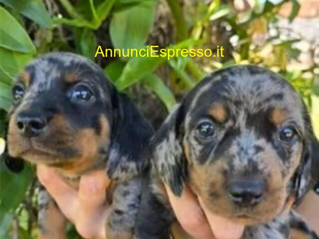 Bassotto nano cuccioli prezzo EUR.750,00 Proponiamo, in pronta consegna, dolcissime femminucce di colore nero focato e maschietti arlecchino di 2 mesi appena compiuti. Inoltre accettiamo le prenotazioni per favolosi e dolcissimi cuccioli di: rosso cervo, silver arlecchino, arlecchino cioccolato cioccolato e nero focato Appartengono a cucciolate diverse nate da genitori diversi che, però, sono tutti visibili presso il nostro allevamento. La prima cucciolata sarà ritirabile dalla prima decade di gennaio. Le altre per la fine di gennaio ed altri per fine febbraio. Al momento del ritiro, i piccolini avranno compiuto 2 mesi e saranno ceduti con: primo vaccino e doppio vermifugo. Saranno iscritti all'anagrafe canina ed avranno chip inserito e passaggio di proprietà incluso. Si rilascerà garanzia sanitaria annuale e libretto veterinario. Prima del ritiro verrà eseguito trattamento antiparassitario. Prezzi a partire da EUR.750, 00 a euro 1. 100. Dipende dal colore scelto. Per info, prenotazioni ed appuntamenti cell [NUM] Torino (TO)
