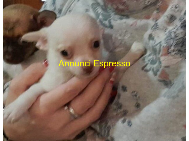 Chihuahua toy maschietti prezzo EUR.550,00 Chihuahua Toy maschietti di 2 mesi compiuti sono in pronta consegna in pronta consegna. 2 sono di colore bianco ed uno tutto nero. Li cediamo regolarmente vaccinati e con doppio vermifugo. Sono iscritti all'anagrafe canina con chip inserito e passaggio proprietà incluso. Si rilascerà libretto veterinario. Mamma e papà appartengono a noi e sono entrambi Toy. PREZZO EURO 700. 00 BIANCHI; PREZO EURO 550. 00 NERO Se interessati chiamare il [NUM] no messaggi. Torino (TO)