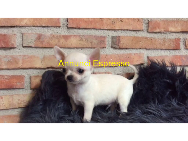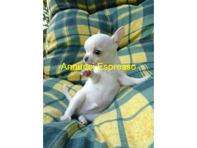 Chihuahua toy maschietti prezzo EUR.700,00 Chihuahua Toy maschietti di 2 mesi compiuti sono in pronta consegna. Sono di colore bianco. Li cediamo regolarmente vaccinati e con doppio vermifugo. Sono iscritti all'anagrafe canina con chip inserito e passaggio proprietà incluso. Si rilascerà libretto veterinario. Mamma e papà appartengono a noi e sono entrambi Toy. Prezzo Euro 700, 00. Se interessati chiamare il [NUM] no messaggi. Torino (TO)
