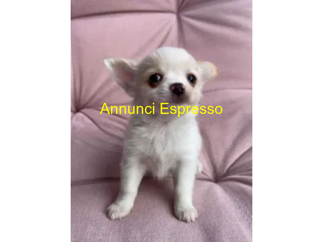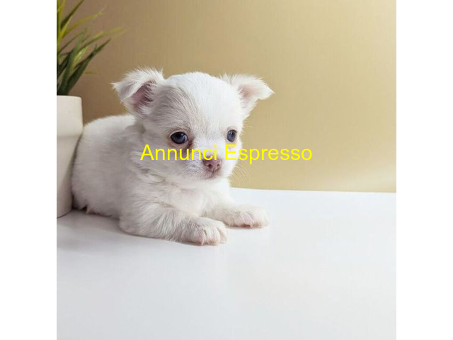 Chihuahua toy maschietto prezzo EUR.650,00 Chihuahua colore bianco a pelo lungo, maschietto di 3 mesi, in pronta consegna. Lo cediamo con doppio vaccino e con doppio vermifugo. E' iscritto all'anagrafe canina con chip inserito e passaggio di proprietà incluso. Si rilascerà libretto veterinario. Mamma e papà appartengono a noi. Prezzo EUR.650, 00 non trattabile Se interessati chiamare il [NUM], no messaggi. Milano (MI)