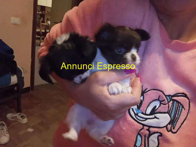 Chihuahua toy prezzo EUR.659,00 Nate in casa due femmine a Due cpuccioli edi piccolka tagolia, pelo bia nco e nero, tenuti in braccio. Età non specificata. Adatti come animali da compagnia. Massa (MS)