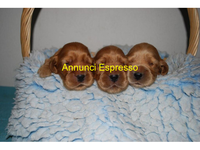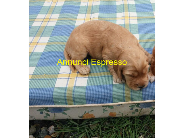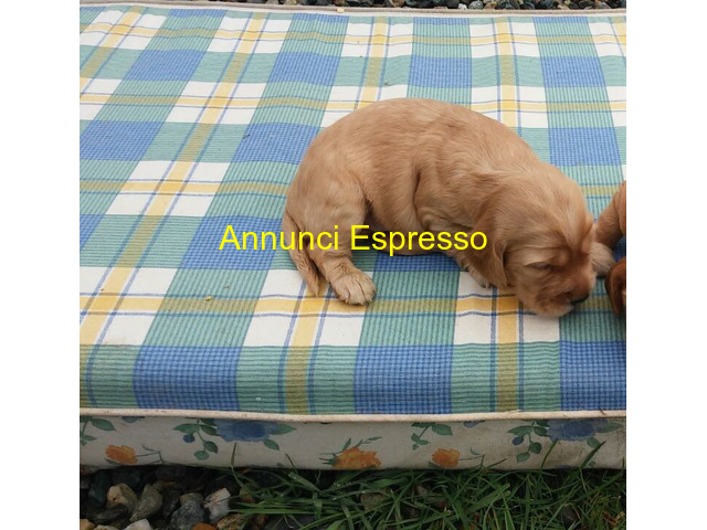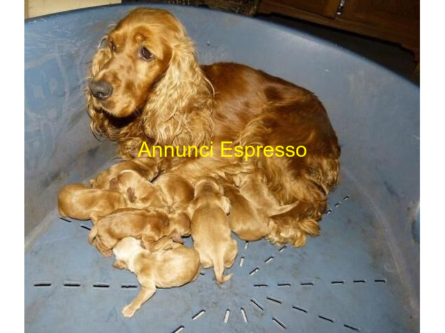 Cocker Spaniel cuccioli prezzo EUR.800,00 Allevamento 100% italiano con genitori dei cuccioli visibili accetta prenotazioni per bellissimi cuccioli di Cocker Spaniel di colore fulvo rossiccio. La consegna è prevista verso fine febbraio quando avranno compiuto 2 mesi. Al momento del ritiro avranno eseguito primo vaccino e le sverminature di routine. Saranno microchippati ed iscritti all'anagrafe canina e con passaggio di proprietà incluso. Si rilascerà garanzia sanitaria scritta con validità di 1 anno insieme al libretto sanitario. Verrà eseguito anche il trattamento Frontline. Prezzo EUR.800, 00. Diamo e chiediamo massima serietà e competenza. Per maggiori informazioni chiamare il [NUM], no messaggi. Torino (TO)