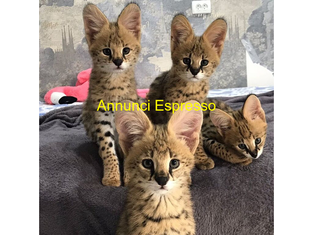 gattino serval disponibile prezzo EUR.1.500,00 Vi presentiamo i nostri gattini serval disponibili per la vendita nel nostro allevamento. I nostri gattini hanno molta energia positiva, sono di colore dorato e sono molto attraenti. Possono vivere ovunque perch? diamo loro un'ottima educazione. Possono vivere con voi in un appartamento, in una stanza o in qualsiasi altro posto, amano la compagnia dei bambini, sono molto affettuosi, puliti, socievoli, curiosi, attenti. Contattaci tramite i nostri social network WhatsApp, Telegram, Viber, Instagram. Cordiali saluti. Crotone (KR)