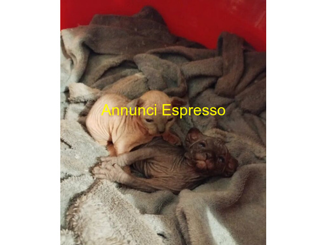 Sphynx prezzo EUR.800,00 RISPONDO SOLO SU MESSAGGI WHATSAPP, , IN SEGUITO TELEFONICAMENTE, GRAZIE Gattini di razza Sphynx, due esemplari, uno chiaro(femmina) e uno scuro (maschio) , , , , amata compagnia, , , rispondo solo su messaggi Whatsapp Foggia (FG)