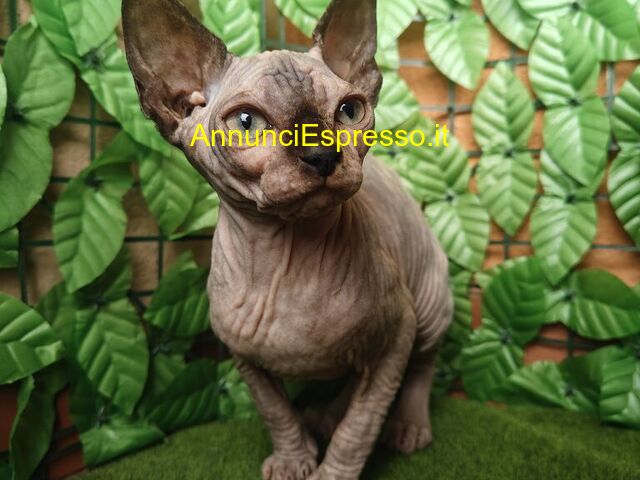 Sphynx prezzo EUR.1.200,00 Disponibili Prenotazioni Siamo un allevamento di Canadian Sphynx con affisso, situato a Roma. Cresciamo i nostri cuccioli in ambiente familiare, dedicando loro tempo, attenzioni e affetto fin dai primi giorni di vita, affinché possano sviluppare un carattere dolce e amorevole. I cuccioli vengono abituati sin da piccoli alla vita domestica, al contatto umano e alla presenza di altri animali. Per questo sono particolarmente indicati per famiglie con bambini, per la cat therapy e per chi desidera un gatto estremamente affettuoso, socievole e presente. I cuccioli vengono ceduti non prima dei 3 mesi d'età , completamente svezzati e autonomi nell'utilizzo della lettiera. Inoltre, consegniamo i nostri cuccioli, in tutta Italia, con: 1. Profilassi veterinaria e libretto sanitario con sverminazioni e vaccinazioni; 2. Kit cucciolo: copertina con l'odore della mamma, giocattolo preferito, croccantini e trasportino; 3. Pedigree. Sia lo stallone che la fattrice sono visibili e testati HCM. Roma (RM)