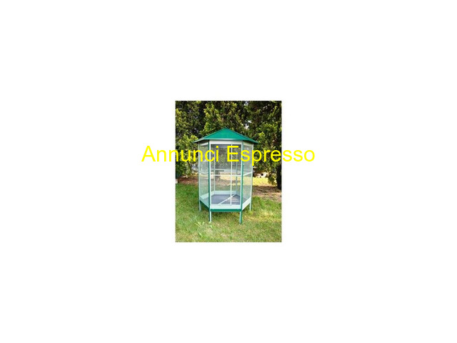 voliera esagonale per cardellini n.19 prezzo EUR.520,00 PREZZO in PROMO assolutamente non fate offerte ne trattative sul prezzo, il prodotto e NUOVO, non contrassegni, non perditempo. Voliera esagonale N. 19 da cm. 65 x lato h. cm. 200 ingombro diam. cm. 155 sportello scorrevole da cm. 40 x h. 60 rete maglia 12 x 25 prezzo iva compresa ? 520 costo compreso di spedizione e iva prodotto nuovo offerto da centro gabbie sicilia no mess ATTENZIONE!! gli ordini vanno presi solo tramite wuazzp o email Gabbia per uccelli in metallo con tetto verde. Spazio ampio e ventilato. Adatta per giardini o esterni. In buone condizioni. Roma (RM)