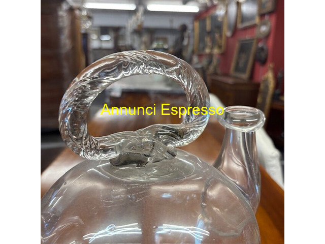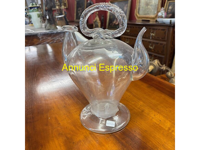 Antica Brocca in vetro soffiato XVIII sec per acqu prezzo EUR.250,00 Antica splendida Brocca in vetro soffiato XVIII sec per acqua santa con doppio versatoio uno per ingresso acqua e uno per uscita. Mis H 32 La 23 diametro base cm 14 cm . Ottimo stato . Oggetto raro Viterbo (VT)