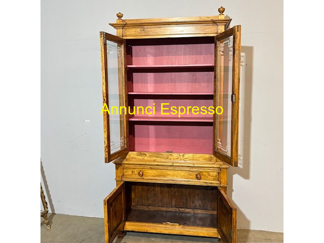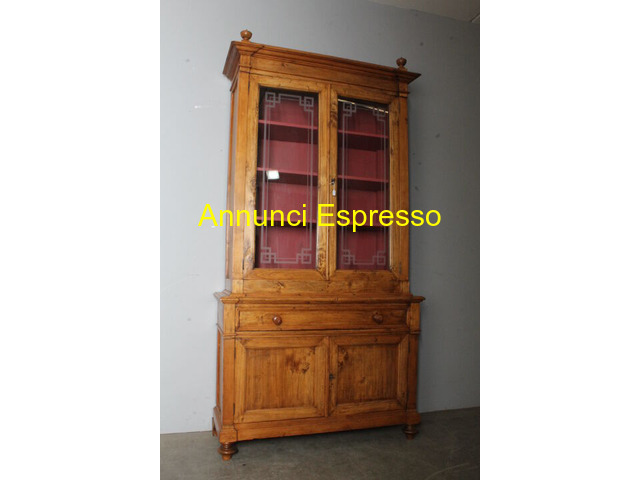 Antica credenza vetrina Liberty 1920 . restaurata prezzo EUR.1.120,00 Antica credenza vetrina Liberty 1920 . restaurata naturale, finitura cera d api . Doppio corpo . Mis 110 x 40. H 206 . Vetri serigrafati . Pronta da essere inserita in ambiente. Utilizzabile anche come libreria. Viterbo (VT)