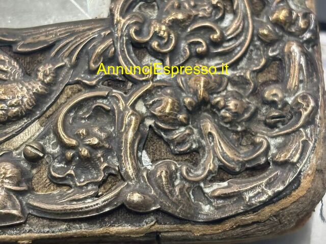 Antica grande cornice, '900 in argento 920 prezzo EUR.450,00 Antica grande cornice, primi'900 in argento 925, marchiata STERLING 105, 42x28. Lavorazione in argento sbalzato. Marchiata in basso Sterling 105-15. Buono stato con specchiera antica. Normali usure dovute al tempo. Esca primo 900. Viterbo (VT)