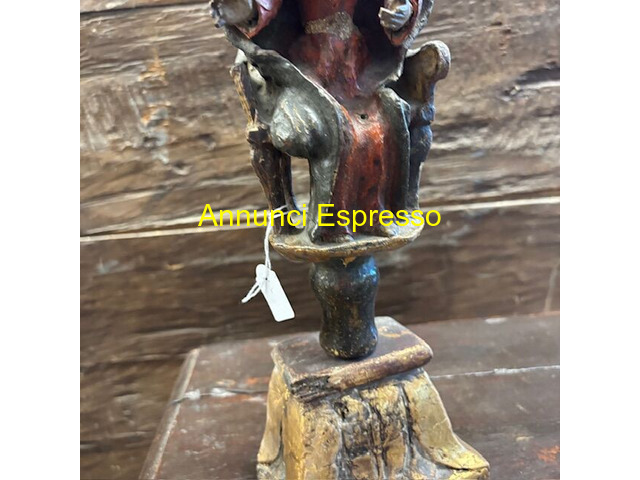 Antica scultura della Madonna su trono . dipinta prezzo EUR.580,00 Antica e rara scultura , probabilmente finale di un bastone , raffigurante regina/Madonna su trono , dipinta policromo , molto bello , epoca XVII sec h 35 compresa la base . Su base dorata . Buono lo stato di conservazione . Viterbo (VT)