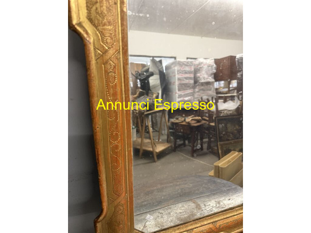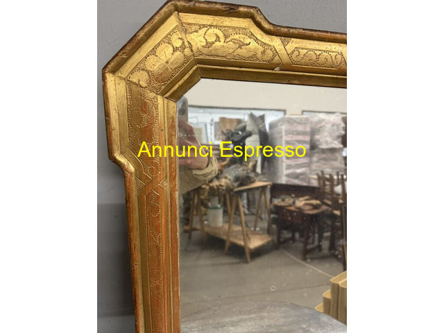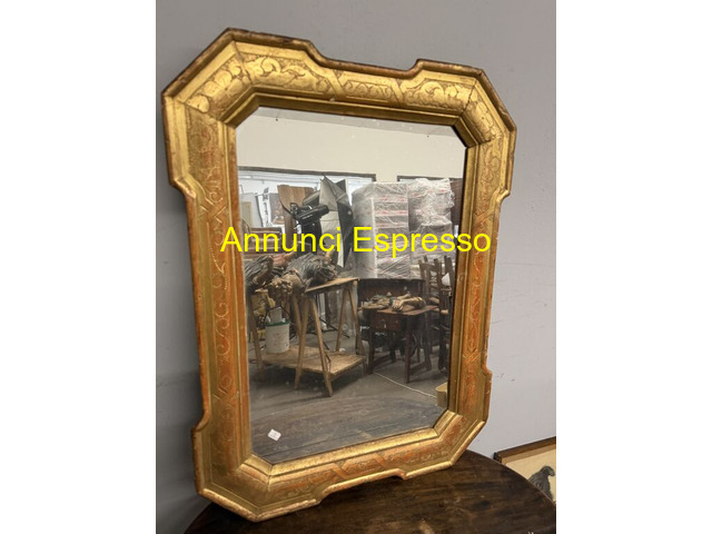 Antica specchiera a vassoio Luigi Filippo, XIX sec prezzo EUR.270,00 Antica specchiera a vassoio Luigi Filippo, metà XIX sec, foglia oro 64x47cm, con lavorazione a punzonatura, specchio antico coevo. Stato molto buono. Normali e leggere usure. Viterbo (VT)