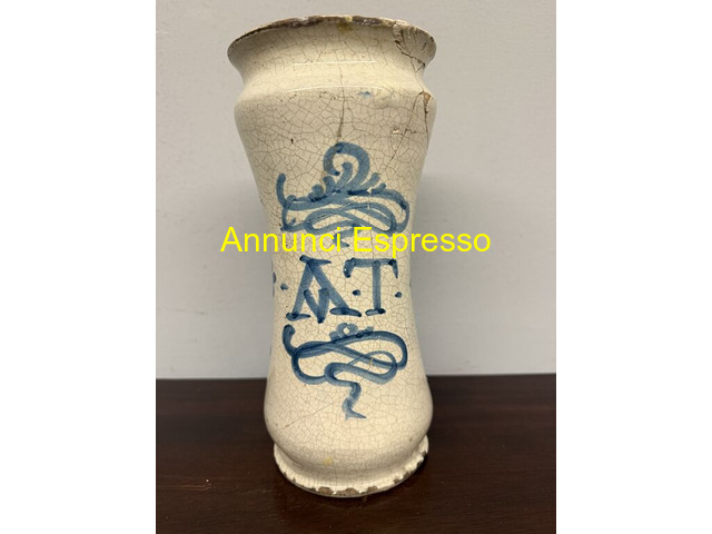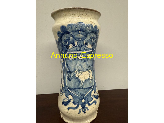Antico albarello da farmacia XVIII sec, portoghese prezzo EUR.420,00 Antico albarello da farmacia XVIII sec, portoghese, 25x12. Con dipinto stemma nobile. Presenti restauri antichi. Viterbo (VT)