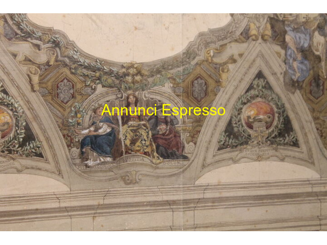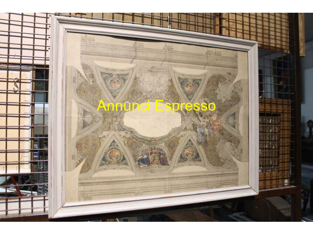 Antico dipinto acquerello studio prospetto prezzo EUR.580,00 Antico dipinto ad acquerello di grande qualità , studio di prospetto di soffitto antico XIX secolo . Mis 85 x 70 compresa cornice . Cm 78, 50 x cm 60 solo dipinto . Viterbo (VT)