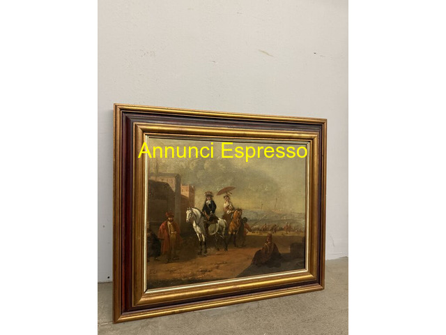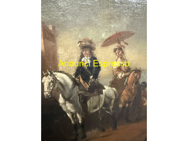 € 1.350 Antico dipinto olio su tela con cavaliere e dama Viterbo