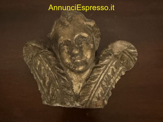 Antico frammento scultura d'angelo dorato, XVII prezzo EUR.70,00 Antico frammento scultura d'angelo dorato, XVII sec, 14x14cm Viterbo (VT)