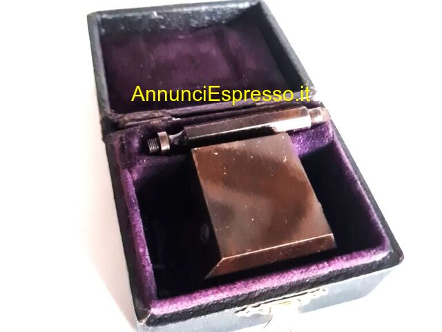 Antico squadro a specchi tascabile Austriaco , prezzo EUR.188,00 Antico squadro a specchi tascabile Austriaco , primi'900, firmato "GEBRUDER . FROMME / WIEN", in ottimo stato , realizzato in ottone brunito a forma prismatica triangolare . Custodia originale in legno, interno rivestito in vellutino viola , etichetta del produttore sul coperchio . Dimensioni cm. 7, 5 x cm. 6, 5 x cm 4, 0 . Vendo ? 188. Gradito contatto telefonico . Cell [NUM] Lodi (LO)