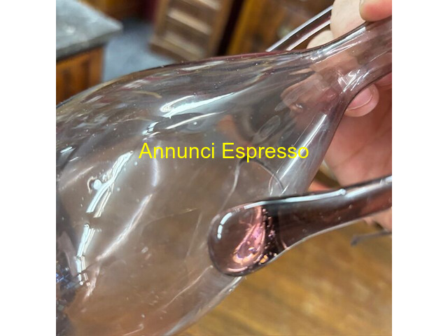 Antica Brocca in vetro soffiato XVIII sec per acqu prezzo EUR.250,00 Antica splendida Brocca in vetro soffiato XVIII sec per acqua santa con doppio versatoio uno per ingresso acqua e uno per uscita. Mis H 32 La 23 diametro base cm 14 cm . Ottimo stat...