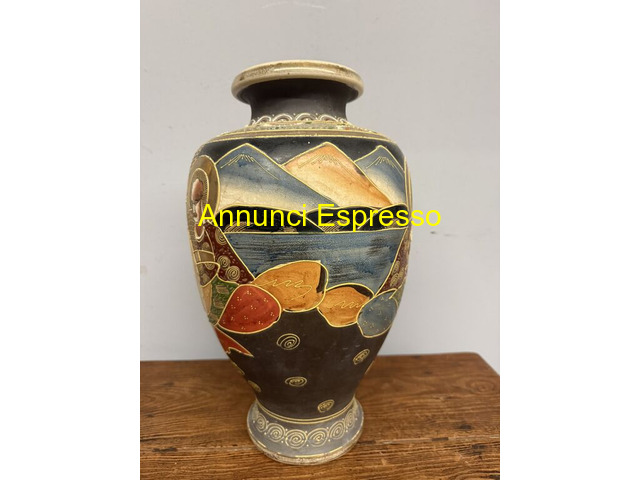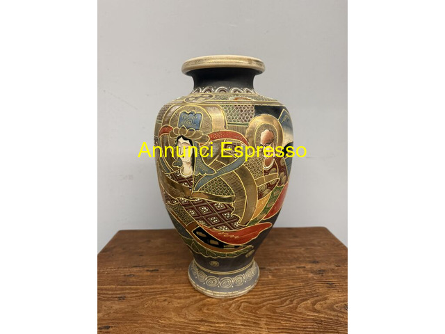 Antico vaso Giappone Satsuma '900 con personaggi prezzo EUR.180,00 Antico vaso in ceramica Giappone Satsuma, primi del '900 con personaggi, 38x25cm. Ottimo stato di conservazione, decorazioni a rilievo, in oro. Perfetto stato. Viterbo (VT)