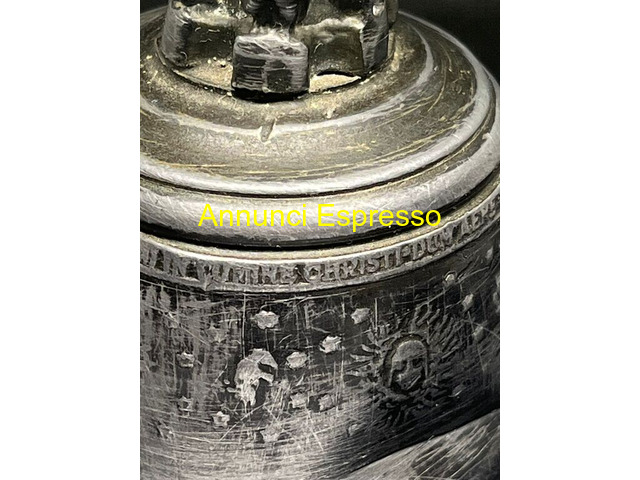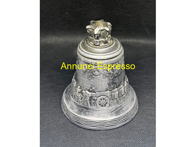 Campana commemorativa collezione prezzo EUR.25,00 campana bronzo commemorativa in rilievo da collezione anni 60 riproduzione della campana dei caduti di Rovereto ha una piccola piega come riportato in foto ma il particolare motivo inciso nell?anello superiore rende questo articolo a bassa disponibilità Follonica (GR)