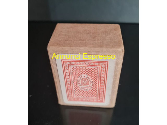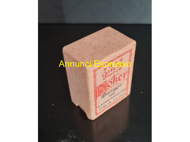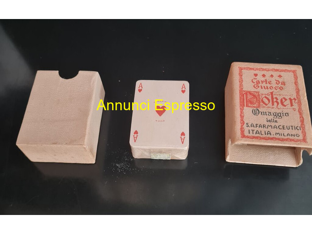 Carte poker mignon ARMANINO Roma da collezione prezzo EUR.138,00 Carte poker mignon ARMANINO Roma da collezione vergini mai usate ancora cellofanate . Pubblicitarie S. A. Farmaceutici Italia Milano sul retro carte marchio farmaco Rodina Montecatini data produzione risalente anni 40. Custodia in ottimo stato come da foto . Vendo a ? 138. Gradito contatto telefonico wapp . [NUM] Lodi (LO)