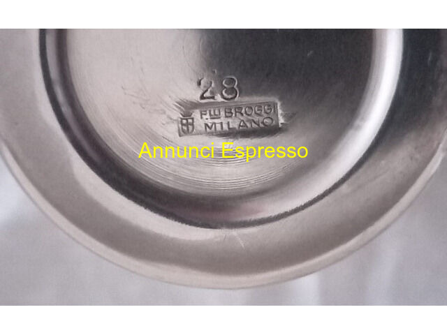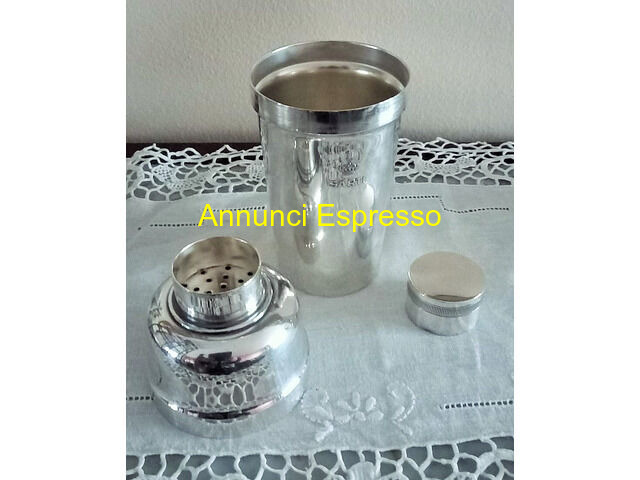 Cocktail shaker pubblicitario vintage F.lli Broggi prezzo EUR.88,00 Cocktail shaker pubblicitario vintage F. lli Broggi Milano in acciaio inossidabile. Firmato sul fondo e riporta n° 28 , inoltre sul frontale marchio distilleria Sarti Bologna con corona reale . In ottime condizioni mai usato . Dimensioni altezza cm . 19 , diametro cm . 8 peso gr. 436 . Vendo ? 88 . Gradito contatto telefonico. [NUM] Lodi (LO)