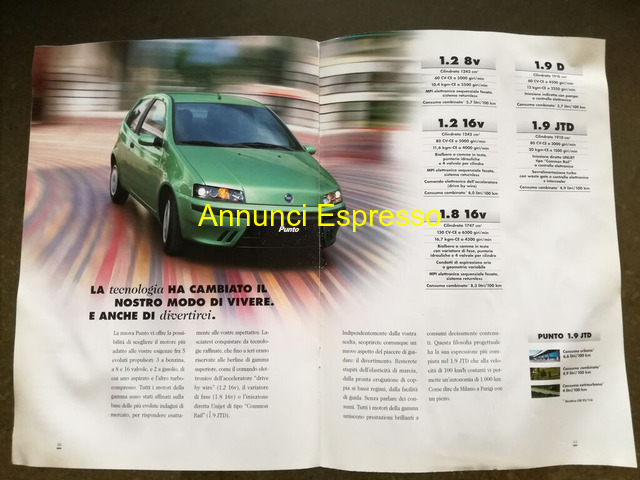 DEPLIANT FIAT PUNTO II prezzo EUR.10,00 OPUSCOLO PUBBLICITARIO FIAT PUNTO SECONDA SERIE STAMPATO 07-99 CM. 30 X 21 CONDIZIONI COME DA FOTO SONO DISPONIBILE PER INF. FOTO POSSIBILE SPEDIZIONE Matera (MT)