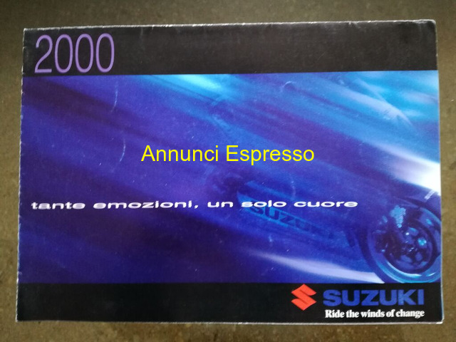 DEPLIANT SUZUKI MOTO prezzo EUR.16,00 OPUSCOLO PUBBLICITARIO SUZUKI CATALOGO GENERALE TUTTI I MODELLI DEL 2000 CM. 30 X 21 CHIUSO CM. 60 X 42 APERTO CONDIZIONI COME DA FOTO SONO DISPONIBILE PER INF. FOTO POSSIBILE SPEDIZIONE Matera (MT)