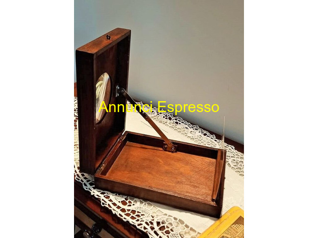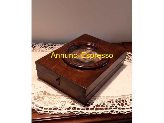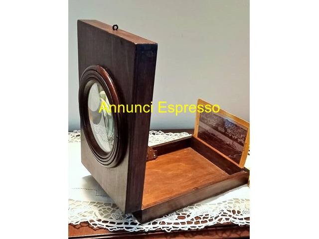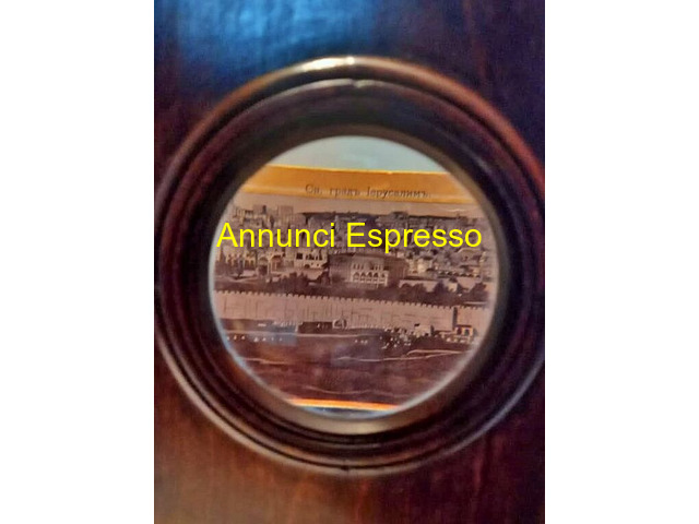 Grafoscopio ingranditore vintage in legno, dime prezzo EUR.138,00 Grafoscopio ingranditore vintage in legno, dimensioni chiuso: 22, 5 x 16x cm . 5, 5 . In dotazione N° 84 cromolitografie d'epoca con soggetti vari : Vita Gesù e Luoghi Santi didascalie in francese e in cirillico . Vendo ?138 . Gradito contatto telefonico [NUM] Lodi (LO)
