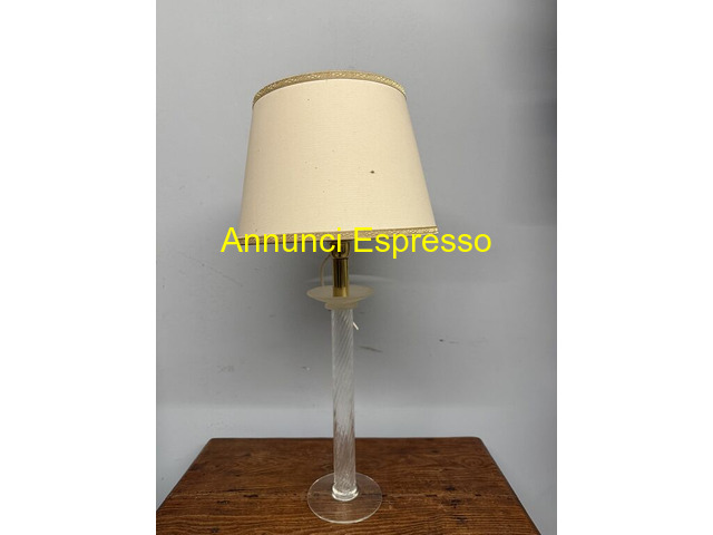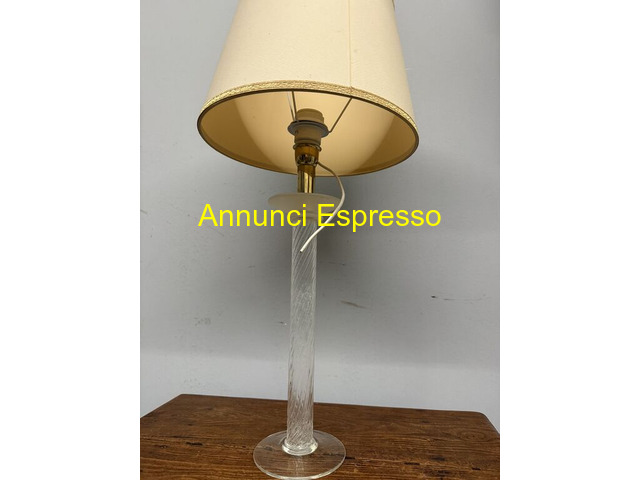 Lampada in vetro trasparente di Murano, anni '70 prezzo EUR.120,00 Lampada in vetro trasparente di Murano, anni '70, mis 63x31cm. buono lo stato generale, il cappello presenta piccole usure, impianto elettrico da completare (su richiesta possiamo farlo noi con i nostri collaboratori) Viterbo (VT)