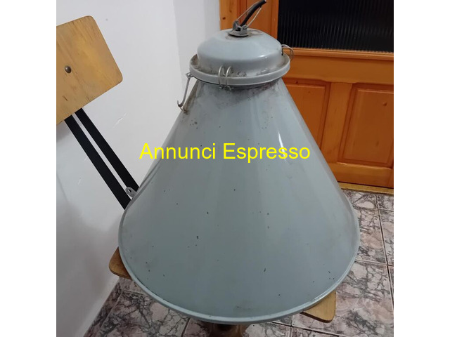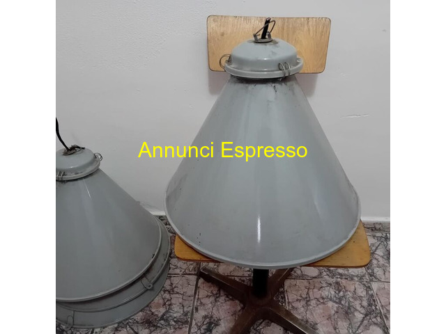 Lampada industriale degli anni 70 prezzo EUR.40,00 Lampade vintage anni '70 per arredamento industrial 40 euro l'una, quattro pezzi disponibili. Tutto è in ordine non hanno difetti pronte all'uso. Lamiera. Dimensioni: diametro cm. 48 x altezza cm. 42. Spese di spedizione 20 euro sia di una che di 4. Vedi gli altri miei annunci. Verona (VR)
