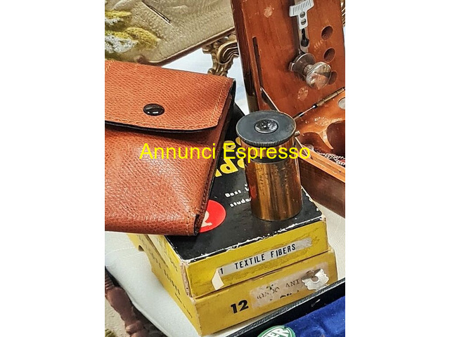 Microscopio portatile da campo vintage in dota prezzo EUR.138,00 Microscopio portatile da campo vintage in dotazione di n? 2 scatole anni '60 di n? 12 di vetrini cadauna . Ingrandimento 50 volte , ottime condizioni , dimensioni cm 4, 7 diametro 2, 5. Vendo ? 138 . Gradito contatto telefonico Lodi (LO)