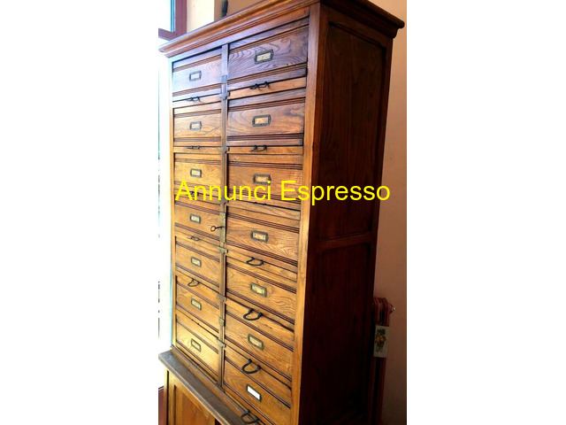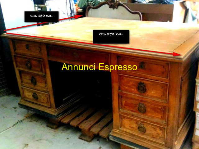 Mobili dei primi \'900 uso ufficio - studio – casa prezzo EUR.800,00 Mobili in legno: Archivio cassetti estraibili, scrivanie ufficio primi anni \'900 vendo. Si tratta nel dettaglio di: -Una scrivania a muro. Con cassetti e serrandina in legno. Misure Altezza: 132 cm. - Larghezza 80 cm. - Lunghezza 212 cm. -Un archivio verticale con cassetti a scomparsa e alla base ripostiglio con antine scorrevoli. Misure Altezza: 236 cm. - Larghezza 48 cm. - Lunghezza 102 cm. La parte dei cassetti estraibili è appoggiata alla base inferiore. -Una scrivania a doppia seduta (da restaurare) con cassetti laterali in entrambi i lati. Misure Altezza: 80 cm. - Larghezza 172 cm. - Lunghezza 130 cm. -Una scrivania a singola seduta. Misure: Altezza: 80 cm Larghezza 78 cm. Lunghezza 148 cm. -Un mobile scrivania con doppia anta (da restaurare) con archivio verticale. Valuto offerte per singolo mobile o in totalità . Enrico Torino (TO)