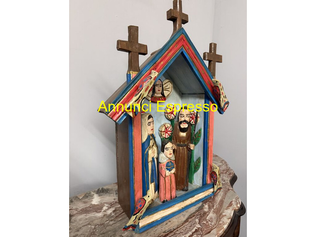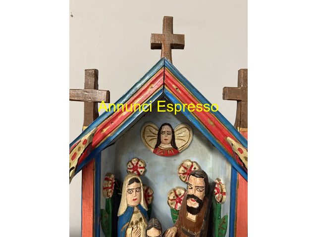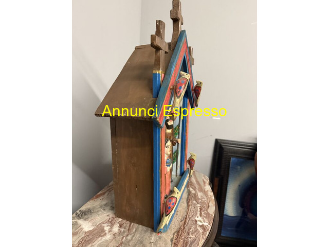 Opera contemporanea XX sec, scultura legno prezzo EUR.220,00 Opera contemporanea XX sec, scultura legno e Capanna con Natività, h64xl46xp23cm. Artista del nord Europa. Scultura a rilievo, stato molto buono. Viterbo (VT)