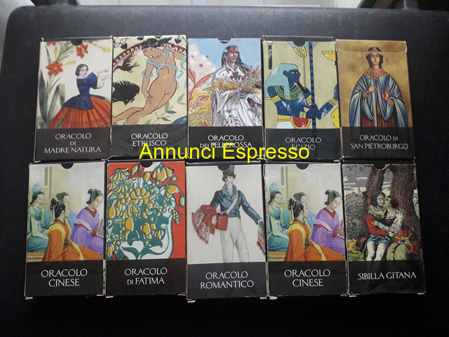 Oracoli Sibille Scarabeo [NUM] mini collezion prezzo EUR.88,00 Oracoli Sibille Scarabeo [NUM] mini collezione n° 10 mazzi carte di cui n° 3 ancora celofanati Etrusco, Madre Natura , Pellerossa, posso inviare foto mazzi aperti . Vendo solo in blocco ? 88 . Gradito contatto telefonico [NUM] Lodi (LO)