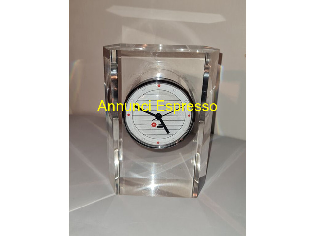 Orologio da Scrivania con logo di CANALE 5 (period prezzo EUR.68,00 Orologio da Scrivania con logo di CANALE 5 (periodo Fininvest). Movimento al quarzo con cassa in Plexiglass. Dimensioni :cm . 16 X cm . 12 X cm. 8, peso 1Kg. Vintage inizio degli anni '80. Funzionante , non presente il tappo posteriore, esteticamente in buono stato di conservazione, presenta piccoli segni come da foto allegate. Vendo ? 68 . Gradito contatto telefonico . [NUM] Lodi (LO)